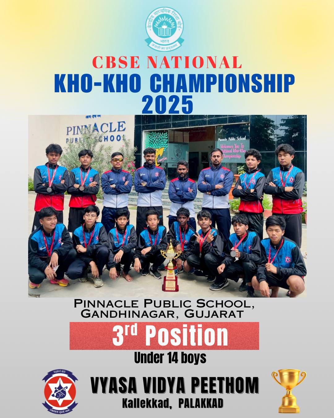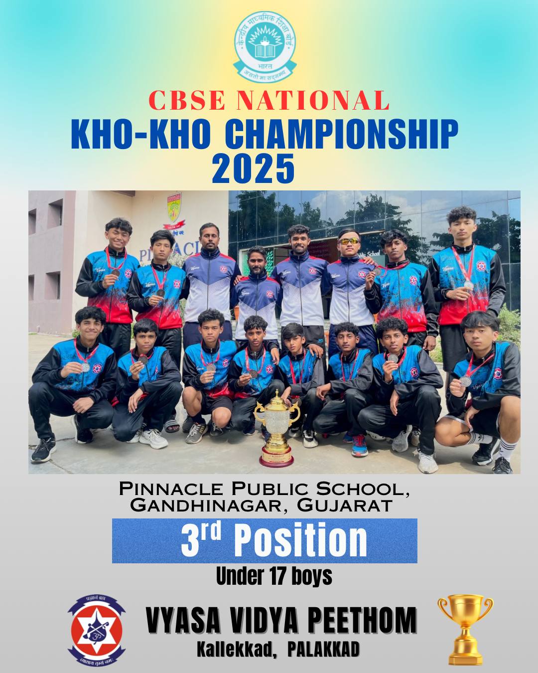Vyasa Vidya Peethom roared at CBSE Kho-Kho Nationals—our U14 and U17 boys stormed into the semifinals and claimed 3rd place at Ahmedabad, Gujarat.